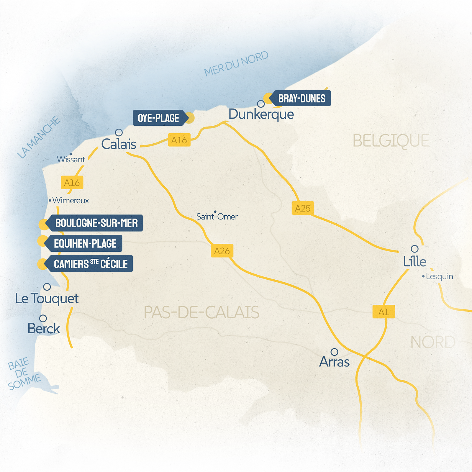 Zin om er even tussenuit te gaan? Laat u betoveren door de Opaalkust, met zijn ongerepte stranden en uitgestrekte landschappen, van Bray-Dunes tot Camiers Sainte-Cécile, via Boulogne-sur-Mer. Voor een meer mediterraan tintje gaat u naar Vence, waar u aan het zwembad kunt genieten van de Provençaalse levensstijl, onder het gezang van de krekels.